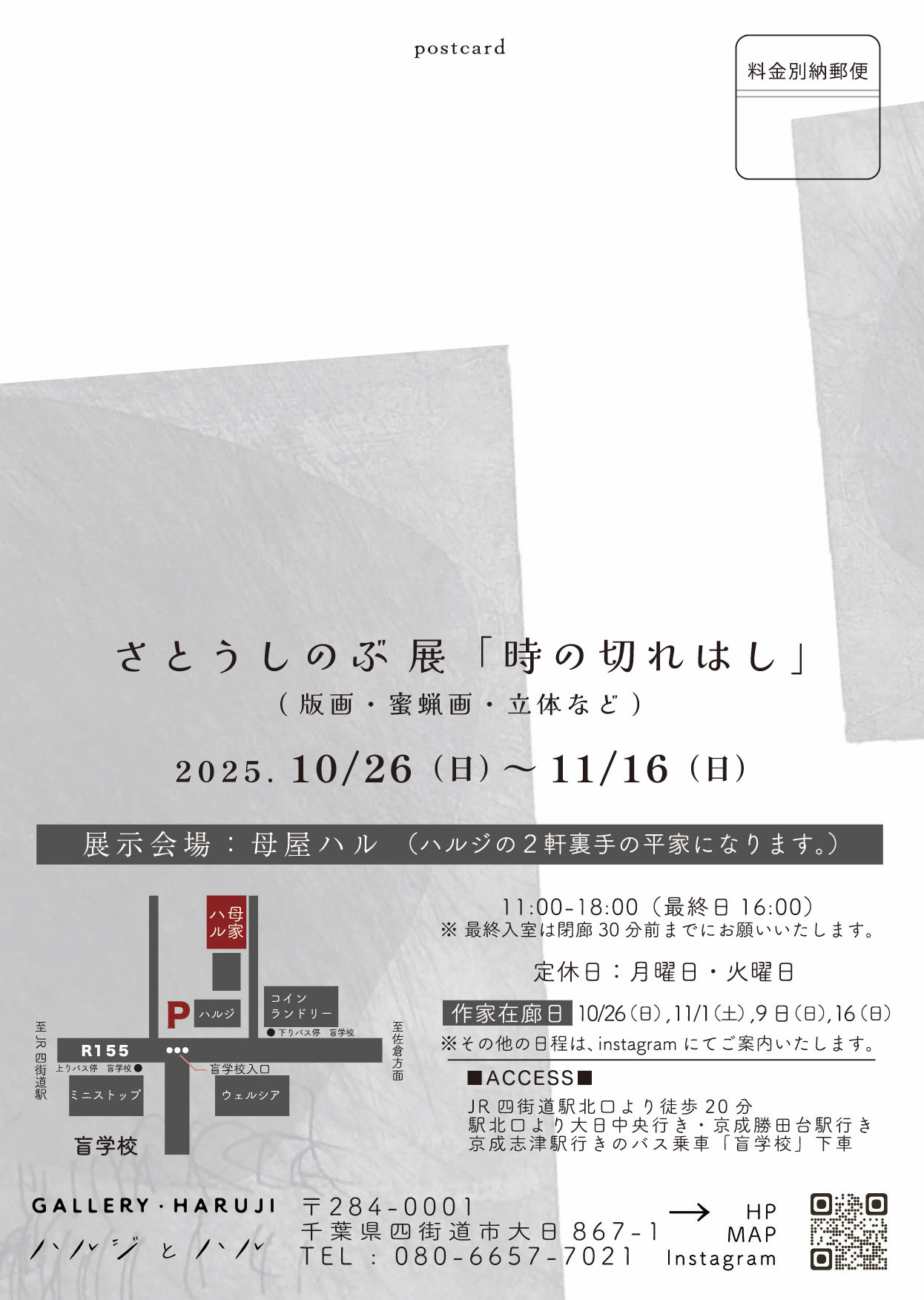 ギャラリーハルジ様の個展 さとうしのぶ 展のDM、ポスターを制作しました。
